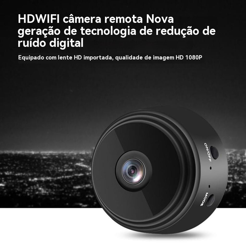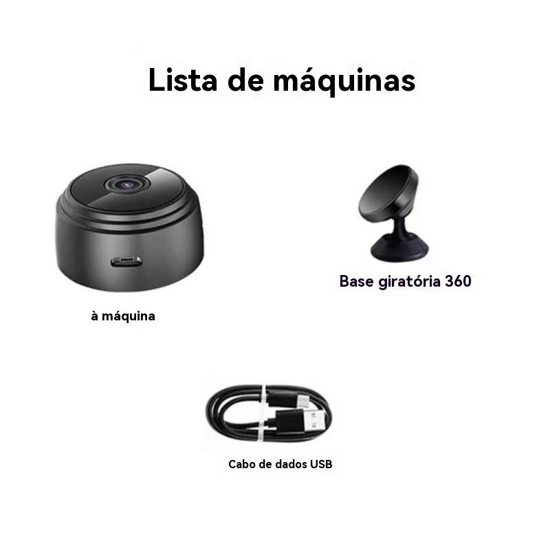 Esta é a câmera de vigilância mini wireless WiFi modelo A9 📹, um pequeno especialista em segurança que funciona tanto dentro quanto fora de casa — detalhes incríveis: