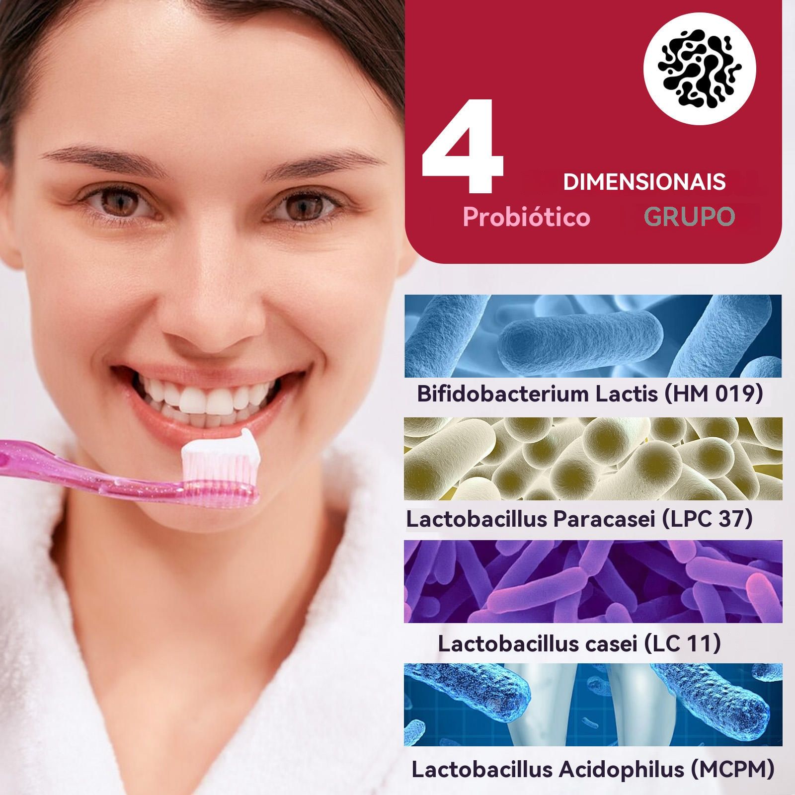 • 4 probióticos em equipe 🥛: Contém bifidobactérias, lactobacilos vegetais e outros 2 tipos de probióticos. Eles equilibram a flora bucal, "derrubam" a placa bacteriana e aliviam a sensibilidade das gengivas (a etiqueta "Probiotic Whitening" na embalagem é sua principal arma~);